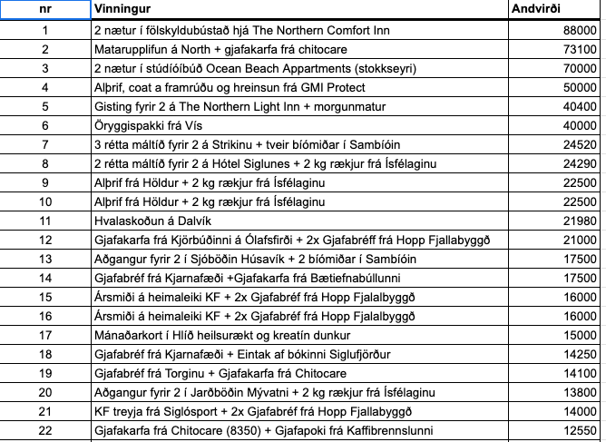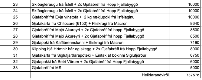 Jólahappdrætti Vinningar Posted on 07/12/2024 by meistaraflokkur Færðu inn athugasemd Hér má sjá vinningskrá fyrir jólahappdrætti KF 2024 Deila: Click to share on X(Opnast í nýjum glugga) X Click to share on Facebook(Opnast í nýjum glugga) Facebook Líka við Hleð... Tengt efni Knattspyrnufélag Fjallabyggðar